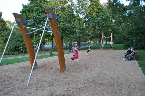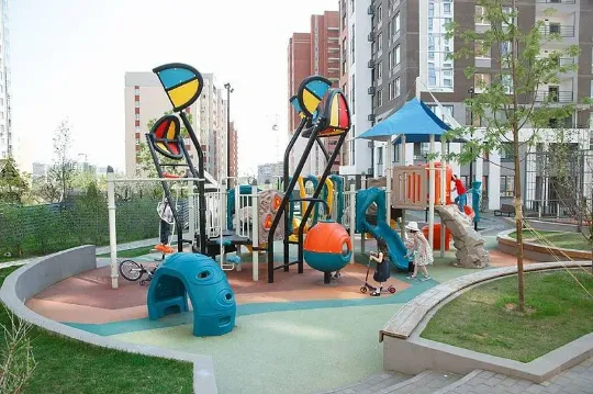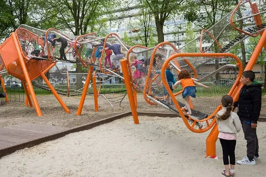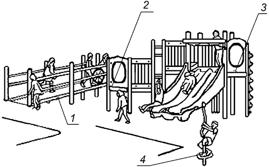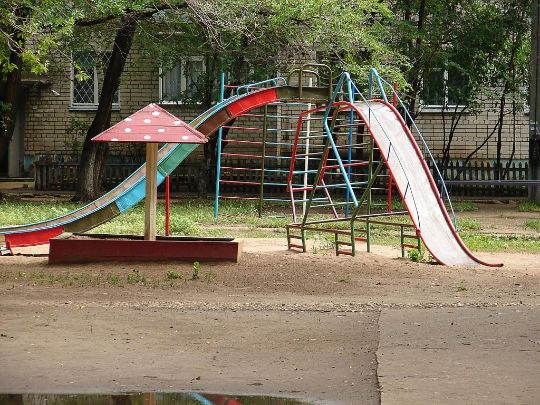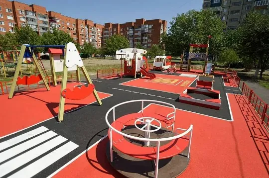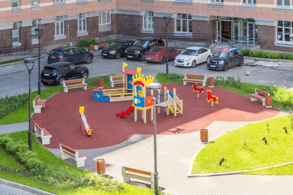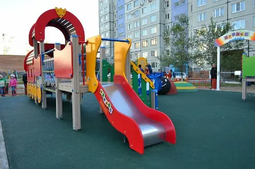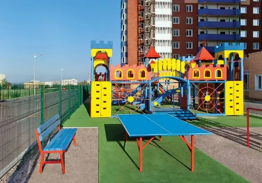 Ограждение детской площадки собирается из прочного материала, способного выдержать вес несовершеннолетних.
